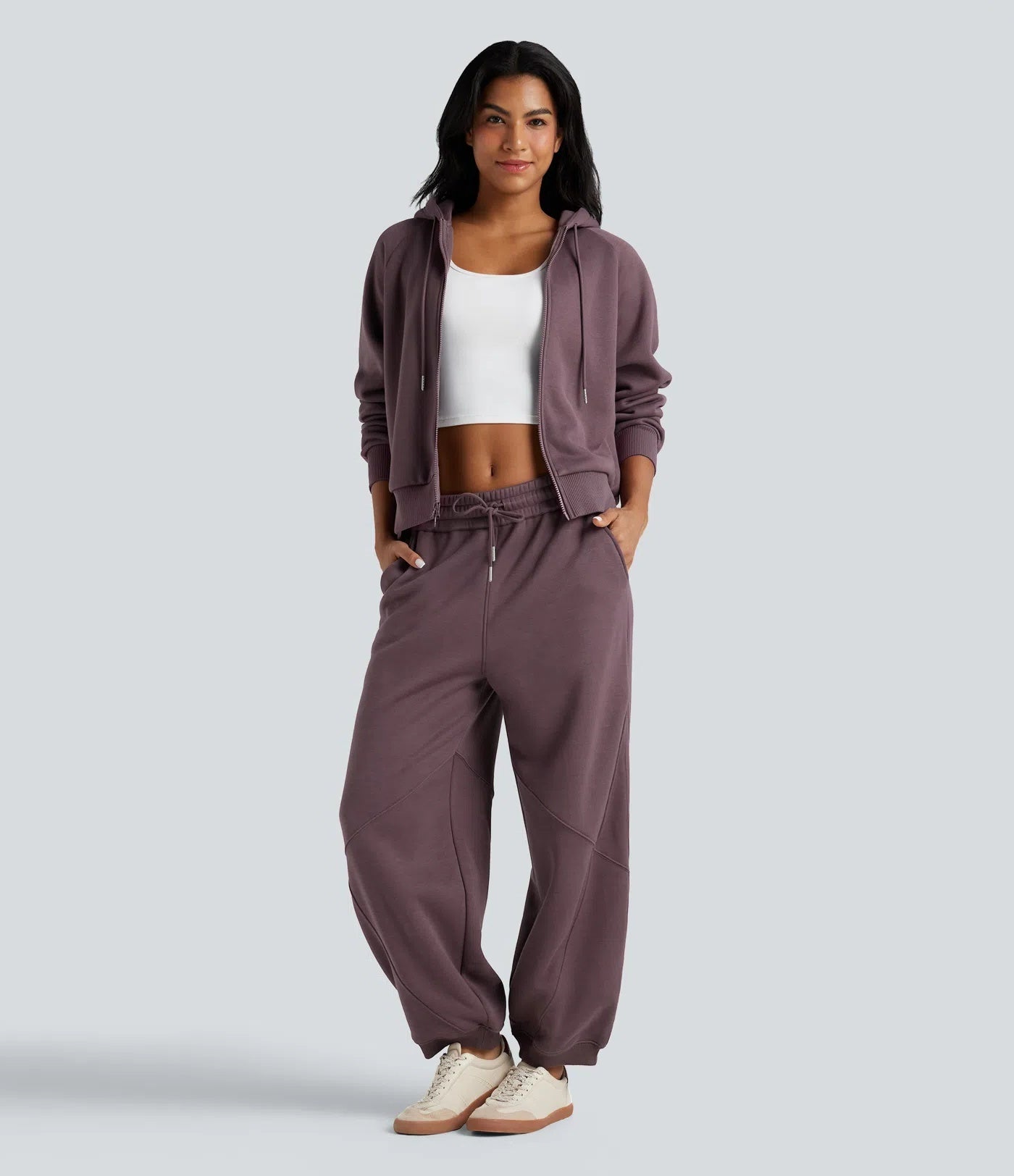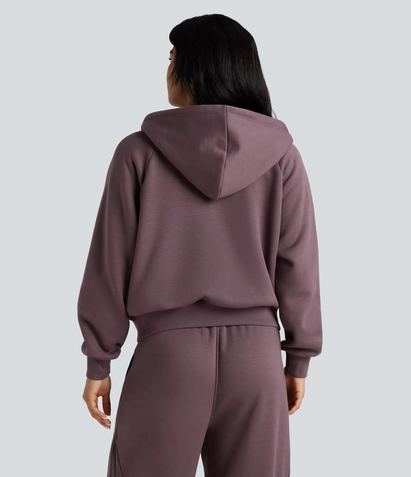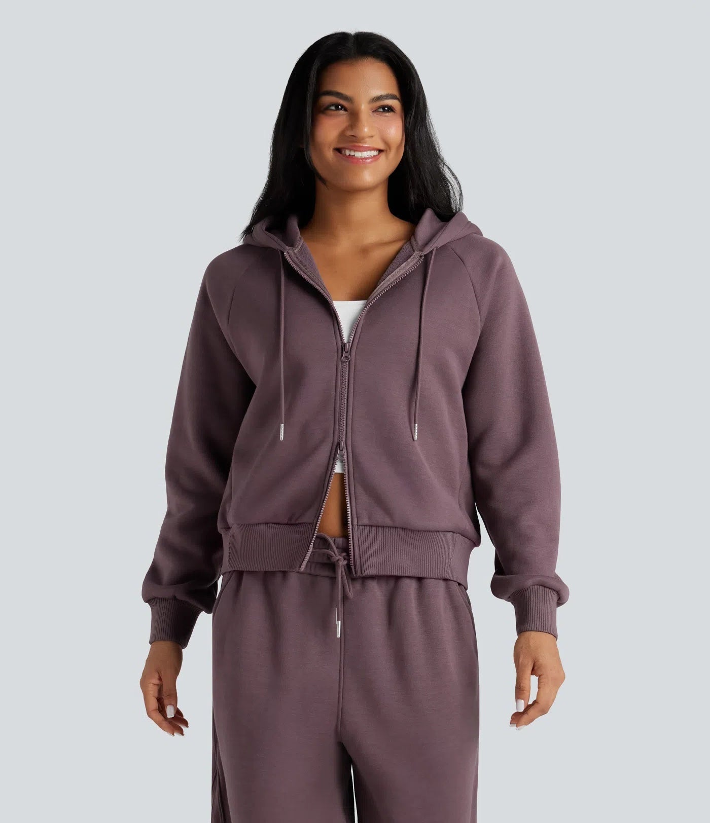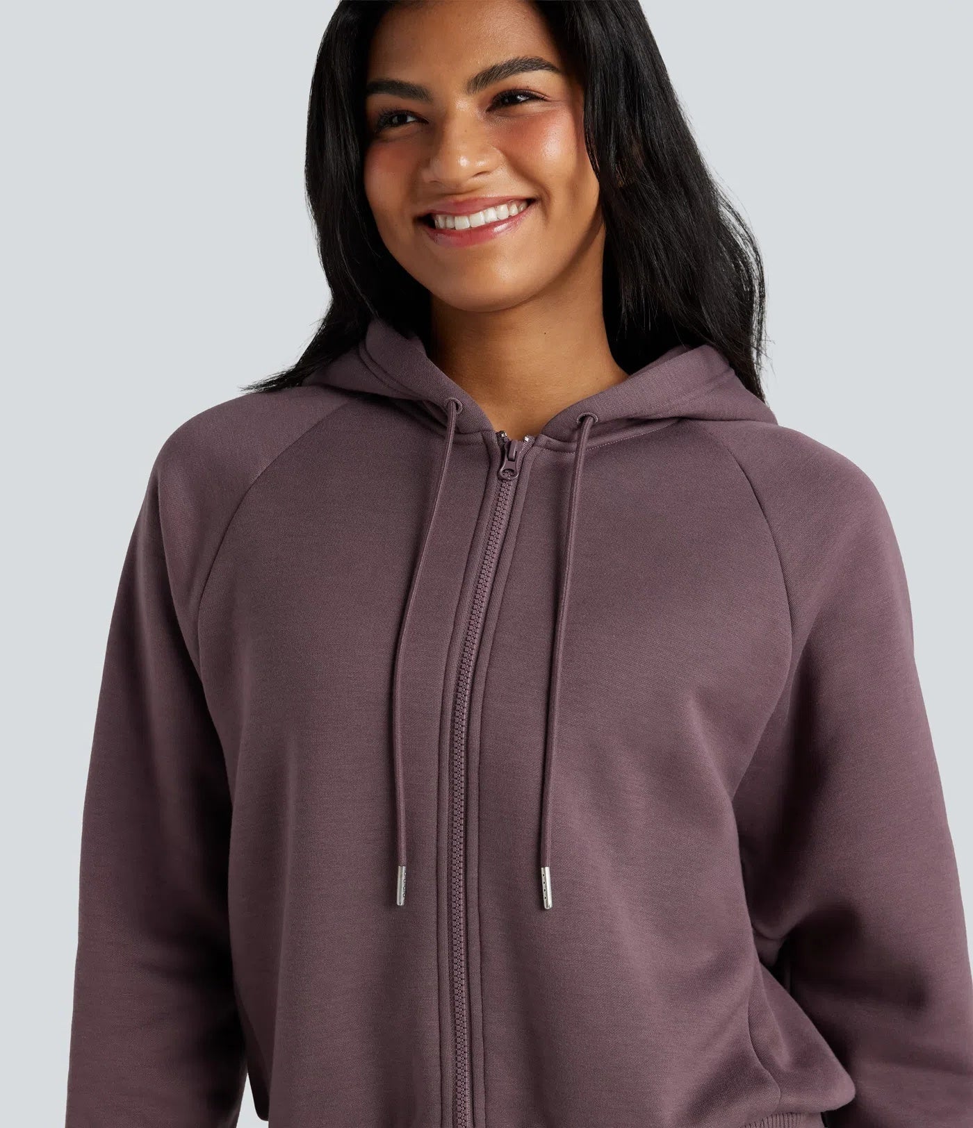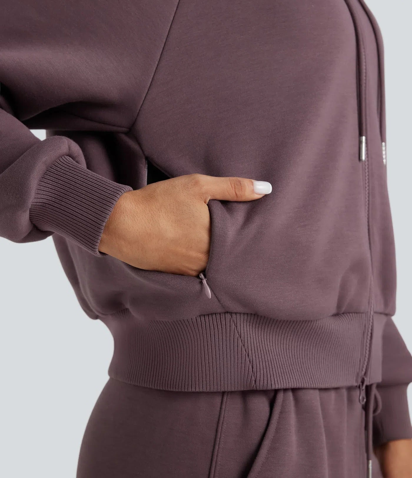 Hooded Double Zipper Oversized Fleece Casual Cotton Sweatshirt with Pockets